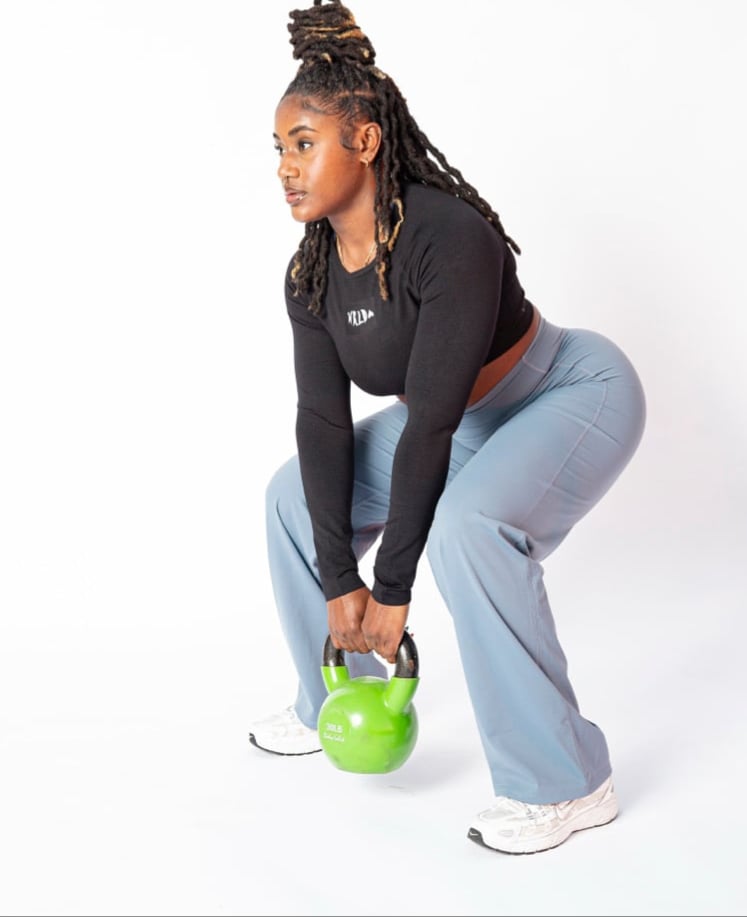 Te presentamos BLUE KYANITE, los leggings acampanados diseñados para esculpir, suavizar y realzar tus curvas naturales. Inspirados en la piedra kyanita azul, combinan elegancia con fuerza para darte una silueta definida y llamativa desde cualquier ángulo.